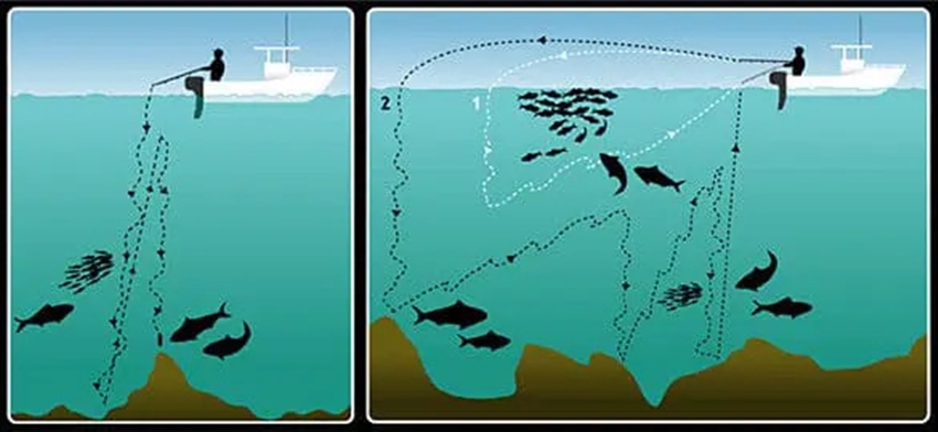 Büyük balıklar gün içinde derin suları tercih ederler, bunun sebebi gün ışığını ve sıcak suları sevmemeleridir. Onları doğrudan etkilemek bu derin sularda yüzen balıkları yakalamanın tek yoludur.